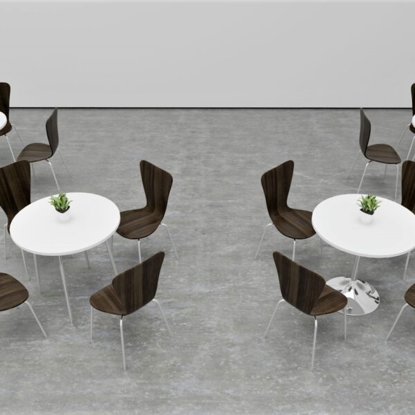 The Blake Contract Table is a mid-height, circular table designed for high-traffic areas like breakout rooms, cafes, and receptions. This heavy-duty table boasts a strong metal base and a 25mm heat and scratch-resistant top, ensuring long-lasting use.