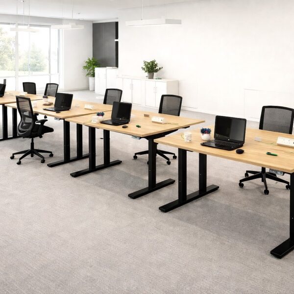 Our Back-to-back twin standing desks are ideal for open-plan offices, you can join two or more together to form a working bench with the optional connector tray, and each user can adjust the desk height individually to suit them. Each sit-stand desk frame is supplied with 4 mounting brackets for privacy screens.